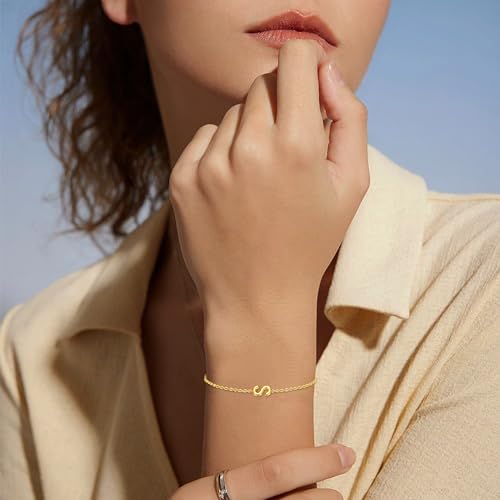 KAERUN Gold Initial Bracelets for Women 18K Gold Plated Letter Charm Bracelet for Teen Girls Gifts Trendy Stuff Cute Simple Monogram Adjustable Link Dainty Bracelets Fashion Jewelry Gifts
