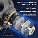 The graphite star-shaped drag system is easy to adjust with a maximum tension of 15.4 pounds. The 10-magnet brake system is easy to adjust and minimizes backlash and a tangled mess inside the reel.