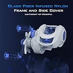 The Fiberglass Infused nylon frame & side cover is lightweight yet powerful, for maximum durability. Its internal mechanics are specifically designed to reduce friction and increase the distance of the cast. If that isn’t enough, this reel with the compact design is sized and designed to fit comfortably in your hand.