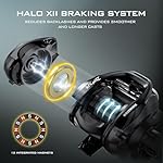 ADVANCED BRAKING TECHNOLOGY – Zephyr baitcasting reels include the Halo XII magnetic braking system – KastKing’s latest release in braking innovation. Our engineers have crafted a total of 12 magnets into a one-piece, seamless ring braking system that provides smoother and longer casts. This design also offers enhanced stability and effectiveness in preventing backlashes.