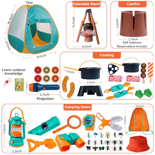 Kids Camping Set 50pcs with Tent & Space Projector Flashlight- Outdoor Campfire Toy Set for Toddlers Kids – Pretend Play Camp Gear Tools for Birthday Christmas