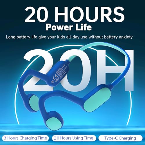 [360° Bendable Without Deformation and IPX5 Waterproof]: Our open-ear earbuds are made with a high-strength memory titanium neckband and food-grade pads, which are skin-friendly and can support 360° bending without any deformation during daily use. Certified as IP55 waterproof, our open-ear Bluetooth headphones are resistant to sweat, dust, and moisture. They are excellent headphones for your kids’ outdoor and indoor sports and normal use