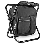 Kikerike Backpack Stool Cooler Chair Heavy Duty 400 LBS Max Load Portable Lightweight Stool Backpack Folding Fishing Cooler Stool for Camping Hunting Fishing – Black