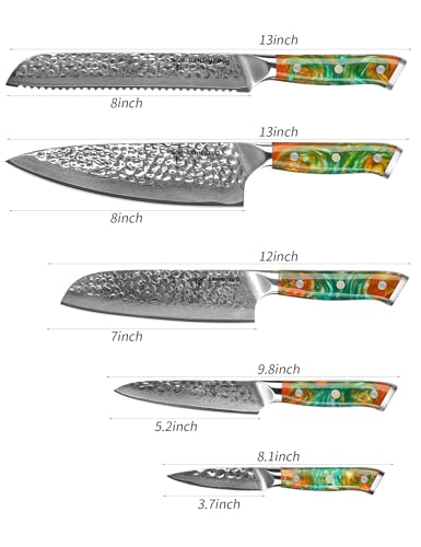 Kitchen Cooking Knife Set – 5 Pieces Chef Knives- Forged Damascus Steel & Resin Handle – Yao Series
