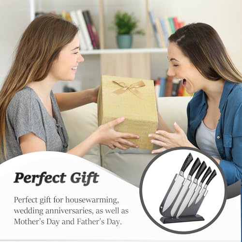 Comfortable & Non-slip Handle: The knife block sets is ergonomically designed and a pleasure to use; Comfortable grip and non-slip handles ensure safety during precise chopping and slicing, allowing for an easy, secure grip; Perfect gift for housewarming, wedding anniversaries, as well as Mother’s Day and Father’s Day