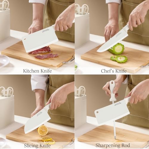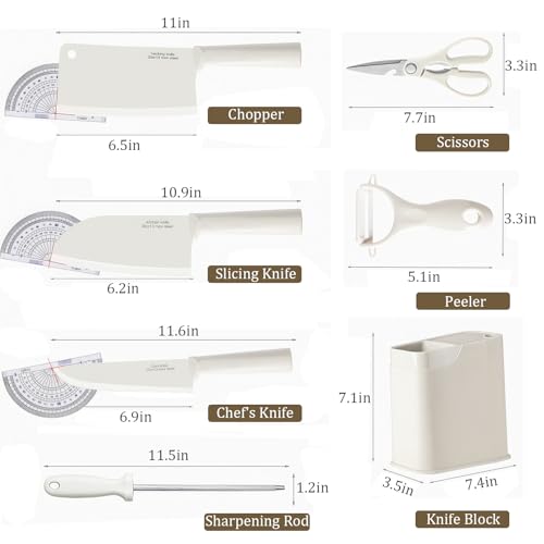 Applicable Scenarios:This 7-piece knives set in white-green is perfect for anyone
