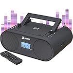 Portable Stereo CD Player Boombox with AM/FM Radio, Bluetooth, USB, AUX-in, Headphone Jack, CD-R/RW and MP3 CDs Compatible, Clear and Full Sound with Bass Boost, AC/Battery Operated – Black $51.99