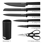 Knife Set, 7 Piece Black Knife Set with Block, Ultra-Sharp Kitchen Knives Set for Kitchen, Ergonomic German Stainless Steel Knife Block Set, Dishwasher Safe (Black)