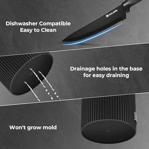 Effortless Maintenance: Both the knives and the knife block are dishwasher safe. The knife block features three drainage holes for easy water removal, and its durable, easy-to-clean design ensures long-lasting performance