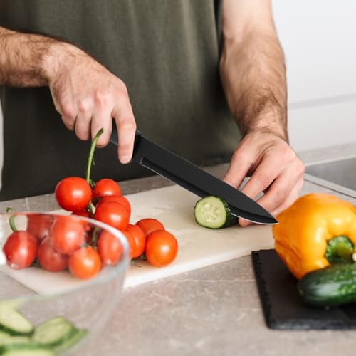 Advanced Non-Stick Coating and Ergonomic Design: This knife set features the latest non-stick coating, allowing for smooth cuts without food sticking to the blade, making cleanup easier. The ergonomically designed handle includes non-slip grips, ensuring a secure and comfortable hold with each use. It’s ideal for extended use without causing fatigue, allowing you to effortlessly prepare a variety of delicious dishes in the kitchen.