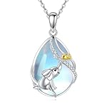 KQF Dragonfly/Butterlfy/Cat/Jellyfish/Bunny/Axolotl/Bee/Mermaid/Hummingbird/Owl Necklace for Women Sterling Silver Moonstone Pendant Necklace Dragonfly Jewelry Gifts for Women