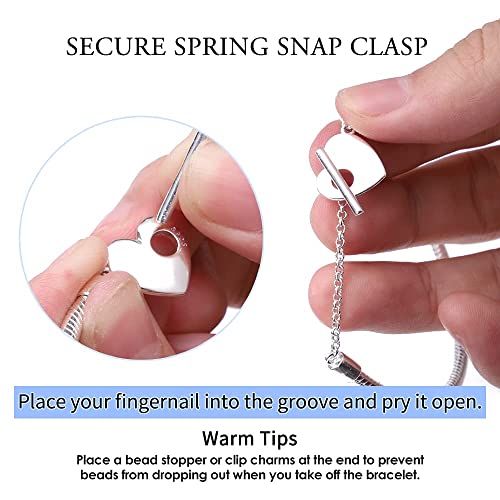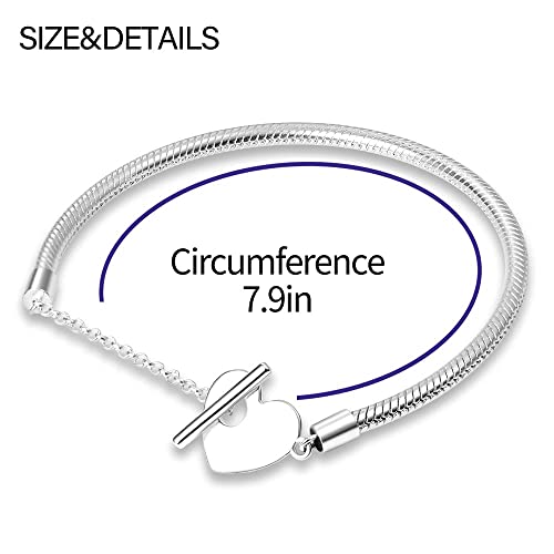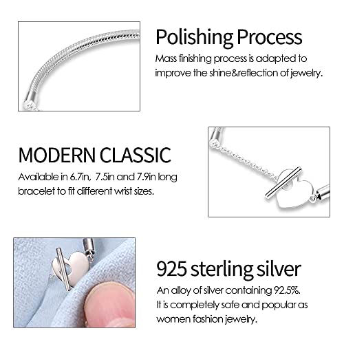 KUNSIR 925 Sterling Silver Snake Chain Bracelet with Safety Chain Charm Bracelets for Women Teen