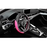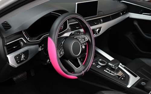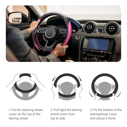 LABBYWAY Microfiber Leather Auto Car Steering Wheel Cover for Women, Universal Fit 15 Inch Anti-Slip Wheel Protector, Pink
