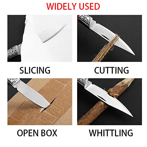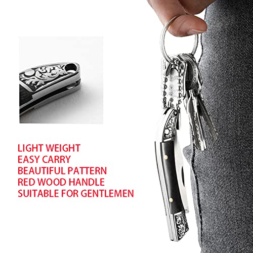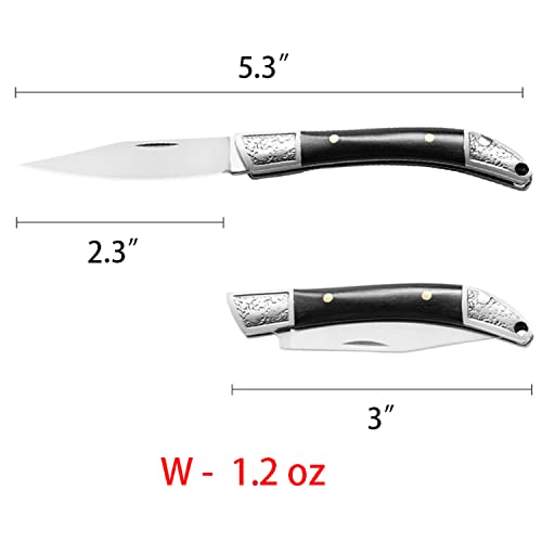 Pocket Folding Knife with Stainless Steel blade and Wood ergonomic handle. Handle have unique non-slip grip design for manipulating ease and comfort grip. Blade length -2.3”; Handle length – 3”; Overall length -5.3”; Weight -1.2 oz. The size and weight of the knife are easy to carry and use, and you can hang it on the key or backpack using a beautiful knife rope. The knife with elegant relievo is especially suitable for as gift and the wooden handle is especially suitable for gentlemen showing good taste. It can be use to open packages,peel fruit,open envelopes,etc. Perfect gift to husband,dad,brother and grandfather can be used for outdoor,indoor,fishing,hiking and camping.