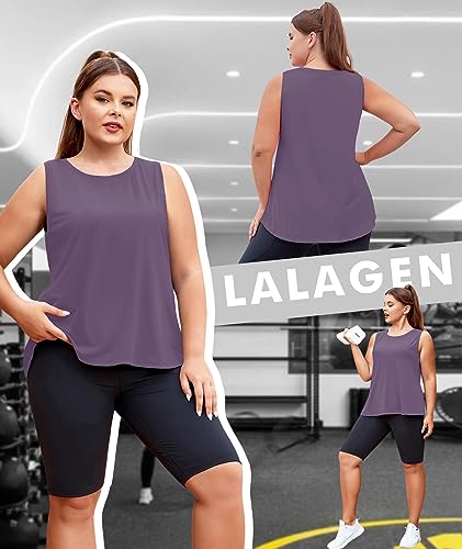 LALAGEN Plus Size Womens Workout Tank Tops Sleeveless Flowy Yoga Athletic Running Shirts