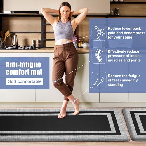 Latida Kitchen Mats 2 PCS, Cushioned Anti Fatigue Kitchen Mat for Floor, Non Slip Waterproof Kitchen Rug Set, 1/2 Inch Thick Comfort Anti Fatigue Mat for Kitchen Sink Office Laundry, Black