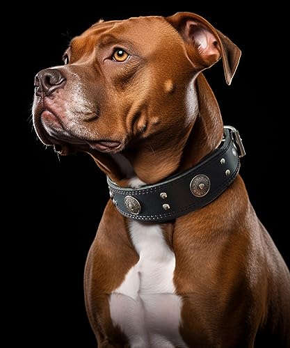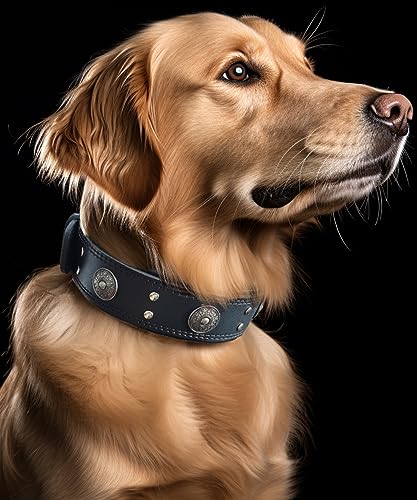 Home Pet Supplies Collars Leather Dog Collar, 2 inches Wide Heavy Duty Genuine Leather Collars, Handmade, Soft, and Luxury, Eye-catching Best Choice for Large and Medium Breed Dogs, Black 19.5-23.5 inches
