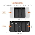 Expandable and Adjustable: The utensil organizer for kitchen drawers can be expanded from 3 slots to 5 slots, offering extra storage space for utensils. It is adjustable to fit different drawer sizes, ranging from 13 to 22.4 inches wide. When folded, it measures 13″ x 15″ x 2″, but expands to 22.4″ x 15″ x 2″ for added space.