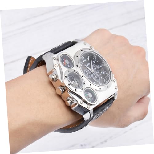 watch The 1349 is a fashion and cool men’s oversize sports wrist watch, which adopts precise dual quartz movements to display dual time zones at the same time, to make it especially suitable for overseas traveling.watches With living waterproof design and comfortable to wear, it is really a wonderful men’s dual-time sports watch for choice.waterproof watch Besides, there are 3 sub-dials, one thermometer and one compass in the watch are just for decoration, without funtions