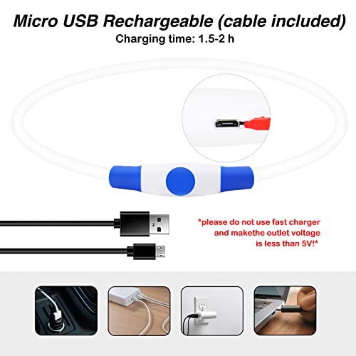 Safety LED Dog Collar: The light dog collar will help you find your dog quickly in the dark. (If the bulb is damaged, the collar will turn into other colors) Please Do Not Use Fast Charging