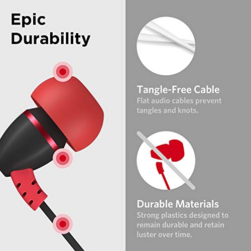 TANGLE FREE WIRE: Features a flat audio cable that prevents tangles and knots and is made of strong plastic material that is built to last, ensuring durability and longevity. The plastic material is also designed to retain its luster over time, giving you earbuds that look as good as new, even after prolonged use.The earbuds come with an inline crystal clear sound microphone that offers an easy reach for a comfortable experience.