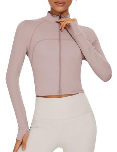 Ivicoer Full Zip Cropped Jackets Workout Tops for Women Yoga Athletic Jacket with Thumb Holes $19.98