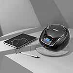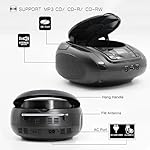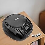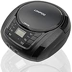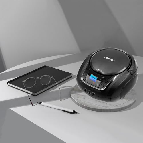 LONPOO Portable Boombox – CD Player, Bluetooth, USB, MP3, AUX, FM Radio, Portable, Built-in Stereo Speakers, Carrying Handle, LCD Display, Black