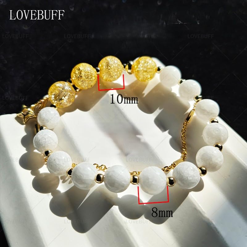▲ Materials: White Onyx; Glass Beads; Alloy; Copper with 12K Gold Plating. ▲ Dimensions: Inner Perimeter 15cm, adjustable; ▲ Weight: 16.8g. ▲ Care: To extend the life of the gold plated finish. Do not expose to water or chemicals. Definitely do not shower with it. Avoid contact with all soaps, shampoos, deodorants, and perfumes. Minimize perspiration. Costume jewelery should not be worn 24/7. After each wearing, use a soft cloth to gently wipe the gold plated finish to remove dirt and any skin oils. This will help retain the luster and overall appearance of the piece. Store it away from other jewelry, so it does not get scratched. Use a jewelry polishing cloth periodically to clean the piece and restore the shine of the gold plated finish. ▲ Note: This is an unofficial merchandise, fan-made inspired artwork.