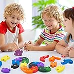 LOVESTOWN Alphabet Jigsaw Puzzle, Building Blocks Animal Wooden Puzzle, Wooden Snake Letters Numbers Block Toys for Kids Birthday Gifts
