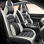 Home Car Accessories Seat Covers Luxury Car Seat Covers,Waterproof Soft Breathable PU Leather Seat Cover with Storage Pockets,Fits 95% of Vehicles(Gray&White,Front Set with Pillow)