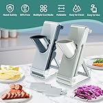 • Safe Mandoline Food Slicer: Our multifunctional slicer prioritizes user safety with a concealed blade, ensuring precise and secure slicing of a variety of foods like fruits, vegetables, and cheeses. Enjoy efficient slicing without compromising safety.