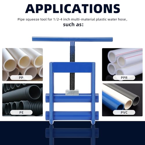 【Applicable Pipes Size】This pipe squeeze tool for 1/2-4 inch diameter water pipe tool for PE/PPR/PVC plastic pipes with a diameter of 0.78 inches – 2.5 inches, can immediately clamp the pipe to prevent water leakage when temporarily cutting off the pipe