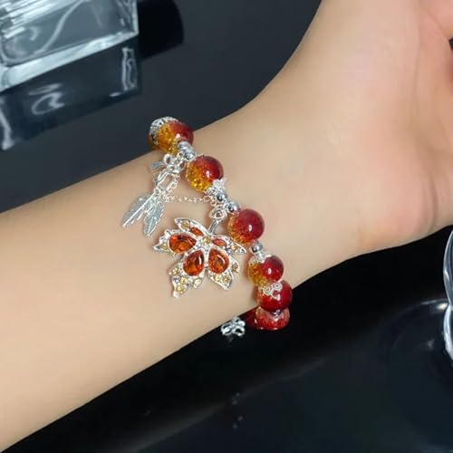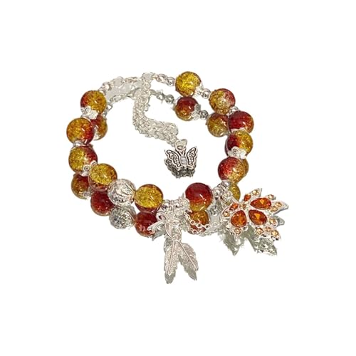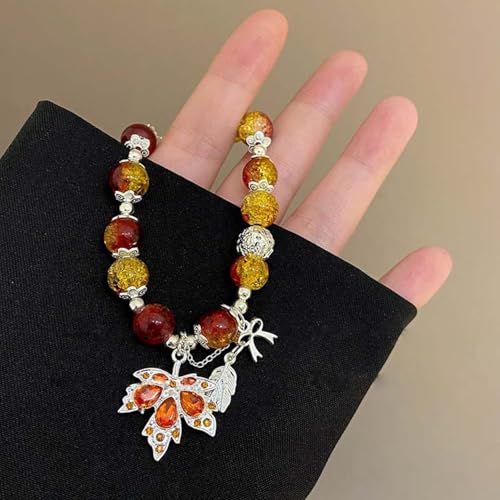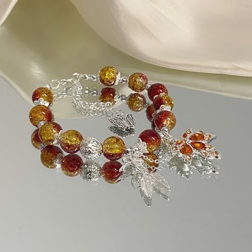 Maple Leaf Bracelet for Women Orange Red Beaded Maple Leaf Bracelet Autumn Crystal Maple Leaf Charm Bracelet Thanksgiving Bracelet Jewelry for Women