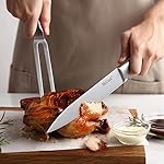 VALUE SET – 11 pieces knife set includes: 8″ chef knife, 6″ meat fork, 7″ santoku knife, 8″ bread knife, 8″ slicing knife,5.5″ serrated utility knife, 4.5” fine edge utility knife, 3.5″ paring knife, 2 pairs of kitchen shears and natural acacia wood knife block with built-in sharpener. Enjoy easy meal prep and paper-thin cuts with minimal effort with this lightweight, easy-to-use knife.