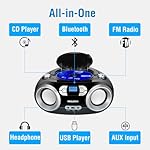 MEGATEK Portable CD Player Boombox with FM Radio, Bluetooth, and USB Port | Clear Stereo Sound | CD-R/RW and MP3 CDs Compatible | 3.5mm Aux Input and Headphone Jack | Backlit LCD Display – Black