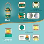 BATTERY-POWERED KIDS CAMPING GEAR TOYS: A true-to-life campfire with extendable stand and oil lantern can light up with 3 AA batteries (not included) and adjust the binoculars to see the world.