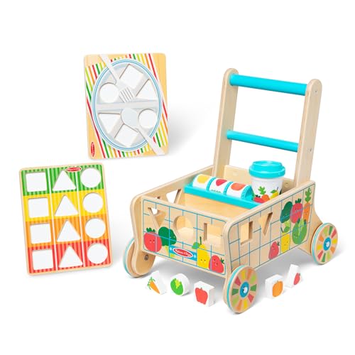 This cheery and sturdy wooden grocery cart is filled with fun skill-building activities! Very young kids can sort colorful chunky wooden food shapes through holes in the sides of the cart, and place them in two wooden puzzle boards that store in the cart. Spin the built-in roller drum for sensory stimulation and matching games, and enhance imitative pretend play with a realistic coffee cup with removable lid that fits in a cup holder in the cart! As kids grow, using the cart as a push toy helps build motor skills and inspire imaginative play. A great way to encourage kids 12 months and older to explore problem-solving and cause-and-effect. Assembled cart measures 15.5 inches tall, 10.75 inches wide, 15 inches long (39.4 cm x 27.3 cm x 38 cm). Melissa & Doug infant and toddler toys inspire “a-ha!” moments of discovery. Adorable, diverse characters and a variety of fun shapes and textures encourage exploratory, skill-building play. FSC certification ensures that products come from responsibly managed forests that provide environmental, social, and economic benefits, and that forests are protected for future generations. Please note that FSC certification applies to new inventory only (FSC C156584).