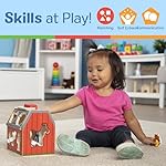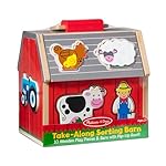 Kids can take farm animal fun wherever they go with the Take-Along Sorting Barn! Fit the 10 wooden play pieces into shaped holes in the sturdy wooden barn, or stand the pieces up for pretend play. Flip up the barn roof for quick and easy access, and use the handle to take playtime anywhere. A perfect gift for toddlers and preschoolers two and older, the chunky pieces (ducks, horse, pig, goat, sheep, chicken, dog, cow, tractor, and farmer) are easy for little hands to grasp and maneuver, and help promote fine motor skills, matching and sorting, and creative play.