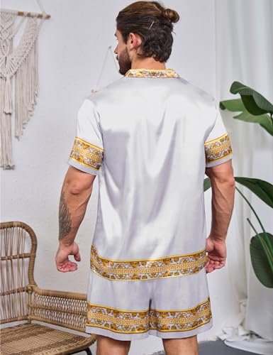 Men Hawaiian Shirt Sets Satin Silk Casual Button Down Shirts 2 Piece Luxury Summer Beach Outfits