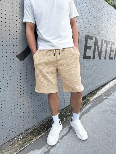 Men’s Sweat Shorts Casual Drawstring Elastic Waist Waffle Texture Athletic Shorts for Men