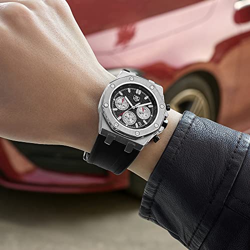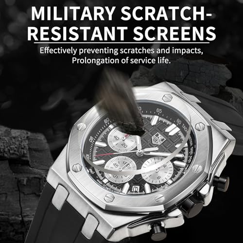 Experience the ultimate in timekeeping with this men’s multifunction chronograph quartz analog watch. Crafted with a durable stainless steel case and a sleek black rubber strap, it exudes a sophisticated yet sporty vibe. The watch boasts a water resistance of up to 30 meters, making it suitable for swimming and water activities. The analog display features luminous hands and markers for easy readability, while the chronograph function allows you to track elapsed time with precision. Whether you’re dressing up for a formal event or hitting the gym, this versatile timepiece will complement your style effortlessly. With its luxurious design and reliable quartz movement, it’s the perfect accessory for the modern man on-the-go.