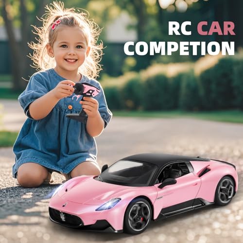 MIEBELY Maserati Remote Control Car, Openable Door 1:12 Scale Rc Toy Car 7.4V 900mAh Licensed 12Km/h Fast Rc Cars with Led Light 2.4Ghz Model Car for Adults Boys Girls Birthday Ideas Gift (Pink)