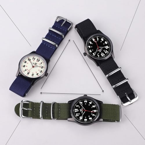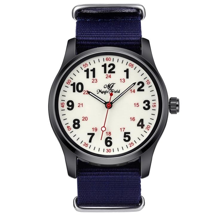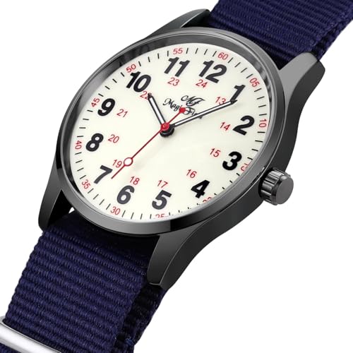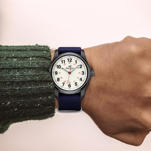Military Watches for Men Easy to Read Watch with Second Hand Watch for Nurse Watch Women Waterproof Luminous Watch Casual Quartz Wristwatch 24 Hours Watch Dark Blue Nylon Strap