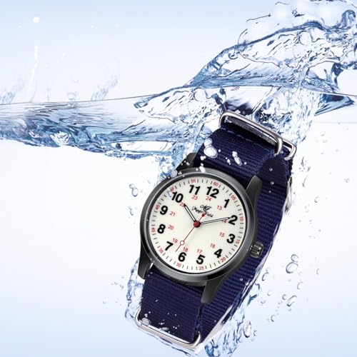 Home Wristwatches Military Watches for Men Easy to Read Watch with Second Hand Watch for Nurse Watch Women Waterproof Luminous Watch Casual Quartz Wristwatch 24 Hours Watch Dark Blue Nylon Strap