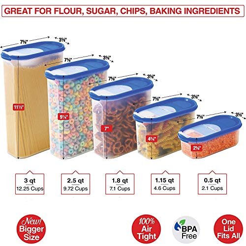 • POURING LIDS- Pour With Ease, No More Spilling! ONE LID FITS ALL -Each Container Has A Pouring Lid Which Is 100% Air Tight. The Lid Forms A Tight Seal To Maximize Freshness And Feature A See-Through Window To See Your Stuff at a Glance.