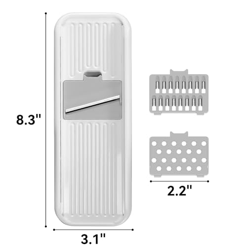 • SAFE AND HEALTHY: Badelite mini mandoline slicer for kitchen is made of food-grade plastic material without BPA. You can prepare healthy meals for your family with no worries. Also, this vegetable slicer cutter provides a hand-guard which you can put small veggies in it and protect your hand while using it.