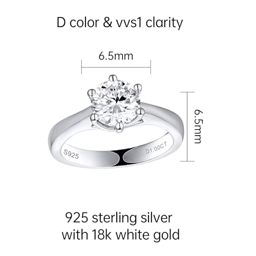 Moissanite Halo Rings, 1/2CT Moissanite Lab Created Moissanite Ring, Moissanite Engagement Ring Sterling Silver Solitaire Moissanite Wedding Rings for Women