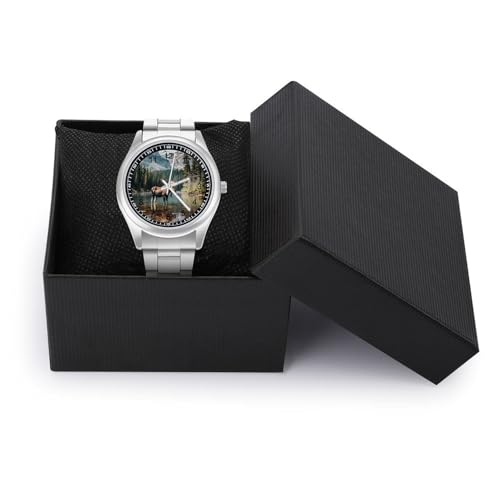 Moose Watches Stainless Steel Band Wristwatch Business Dress Watch for Work Home