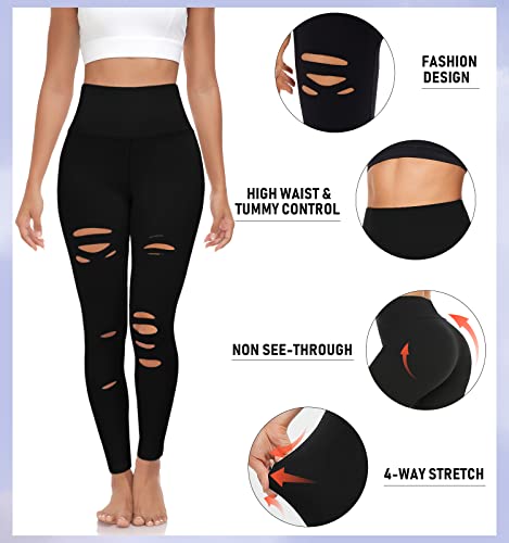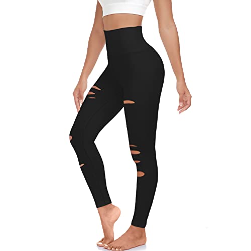 MOREFEEL Ripped Leggings for Women-High Wisted Leggings for Women Tummy Control Cutout Yoga Pants