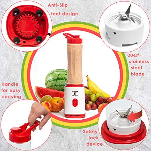 Moss & Stone Single Serve Blender, White & Red, 20 oz